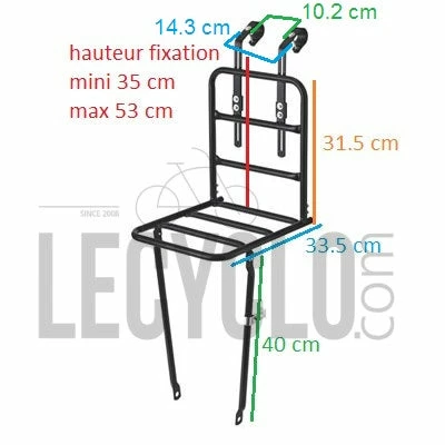 Le porte-bagages est à l’origine prévu pour des vélos équipés d’une potence assez haute, sur lesquels la position est relativement droite comme les vélos hollandais par exemple. Dans le cas où votre potence est plus courte, il est possible de retourner les crochets de fixation et ainsi avoir une hauteur de fixation plus basse. Certains clients ont ainsi monté le porte-bagages avec succés. Nous ne pouvons cependant garantir le montage.