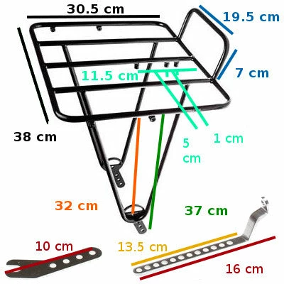 Les matériaux qui composent ce porte-bagages comme l’acier inoxydable sont des matériaux résistants d’une qualité exceptionnelle. Avec des dimensions de 38 cm x 30.5 cm, il supporte une charge jusqu’à 18 kgs. Le système universel de montage sur roues est fourni. Il est lui aussi extrêmement robuste, et permet un démontage rapide du porte-bagages.
