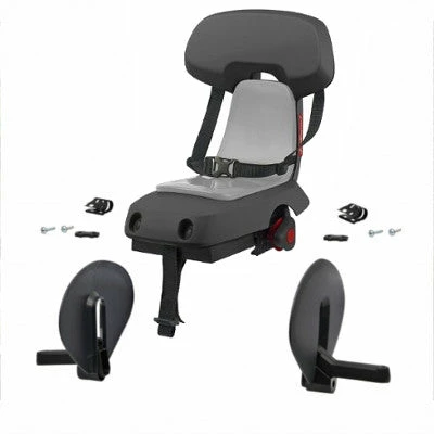 Votre enfant est installé derrière vous en toute sécurité grâce à une ceinture abdominale et des repose-pieds Guppy gris foncé à fixer facilement sur le cadre du vélo (les repose-pieds sont fournis avec le siège). Les cales pieds permettent une double sécurité : les pieds de l’enfant sont stabilisés et ne se prennent pas dans les rayons.
