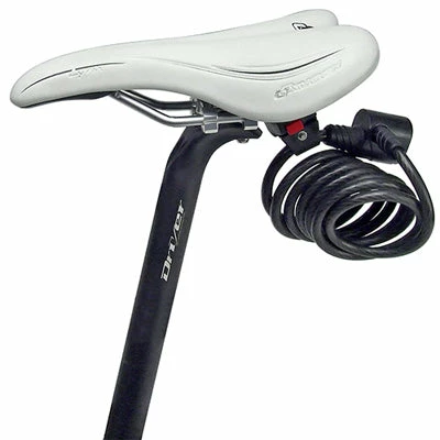 - Un adaptateur sur lequel attacher un antivol câble dont le diamètre est compris entre 6 et 10 mm. Cet adaptateur vient lui aussi se clipser à la fixation sur rails de selle en un simple clic.